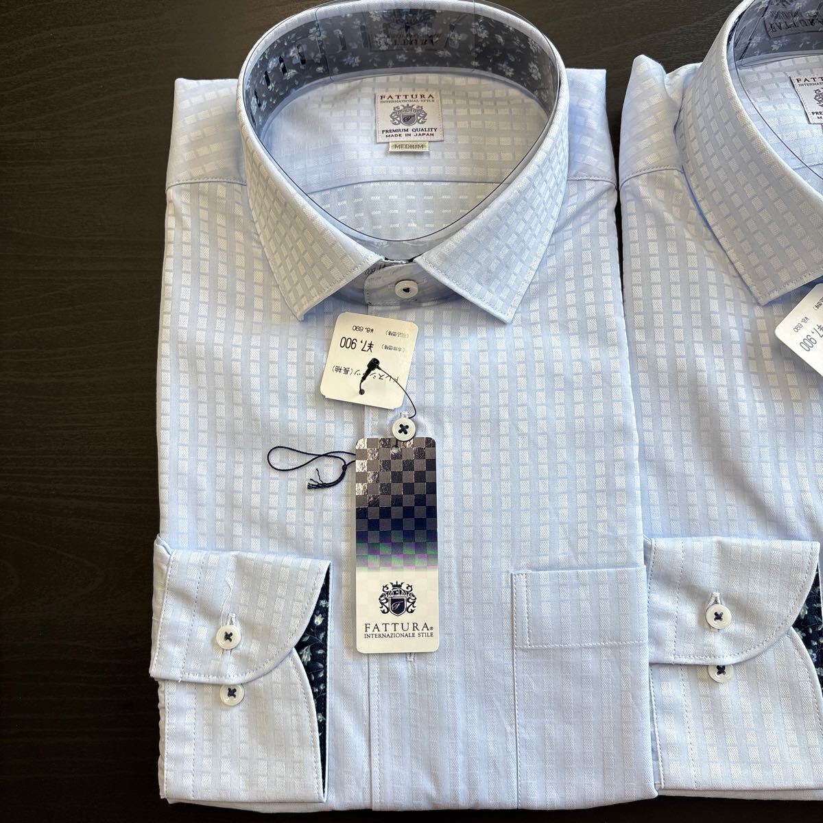 - 新品未使用 日本製綿100% FATTURA 同型ショートセミワイドカラー ブルー織柄2枚セット サイズM まとめて取引大歓迎