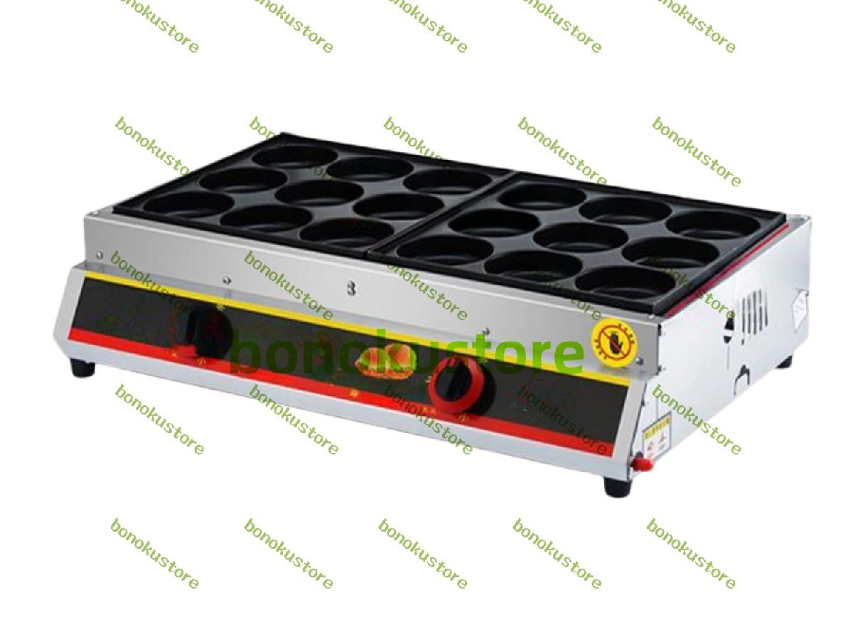 > アップグレード 10CM ガス、18穴エッグバーガーマシン、お手入れが簡単な収納ラック付きケーキマシン (ガス18穴+消火装置)