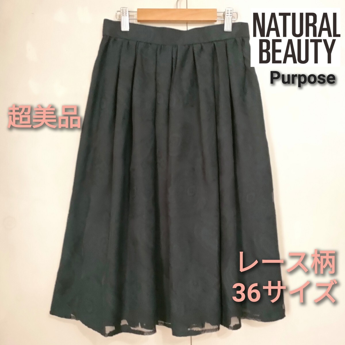 > 【極美品】ナチュラルビューティーパーパス★フレアスカート 黒 レース柄 36サイズ NATURAL BEAUTY Purpose