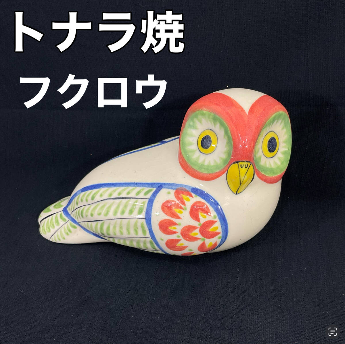 > パロマロール社 トナラ焼き フクロウ 置物 絵付け ふくろう 全長約20cm 不苦労 インテリア 民芸雑貨 縁起物 (C1986)