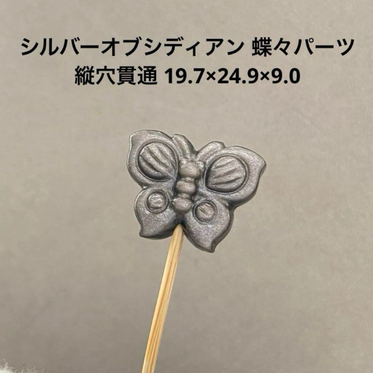 - D251 シルバーオブシディアン 蝶々 縦穴貫通 19.7×24.9×9