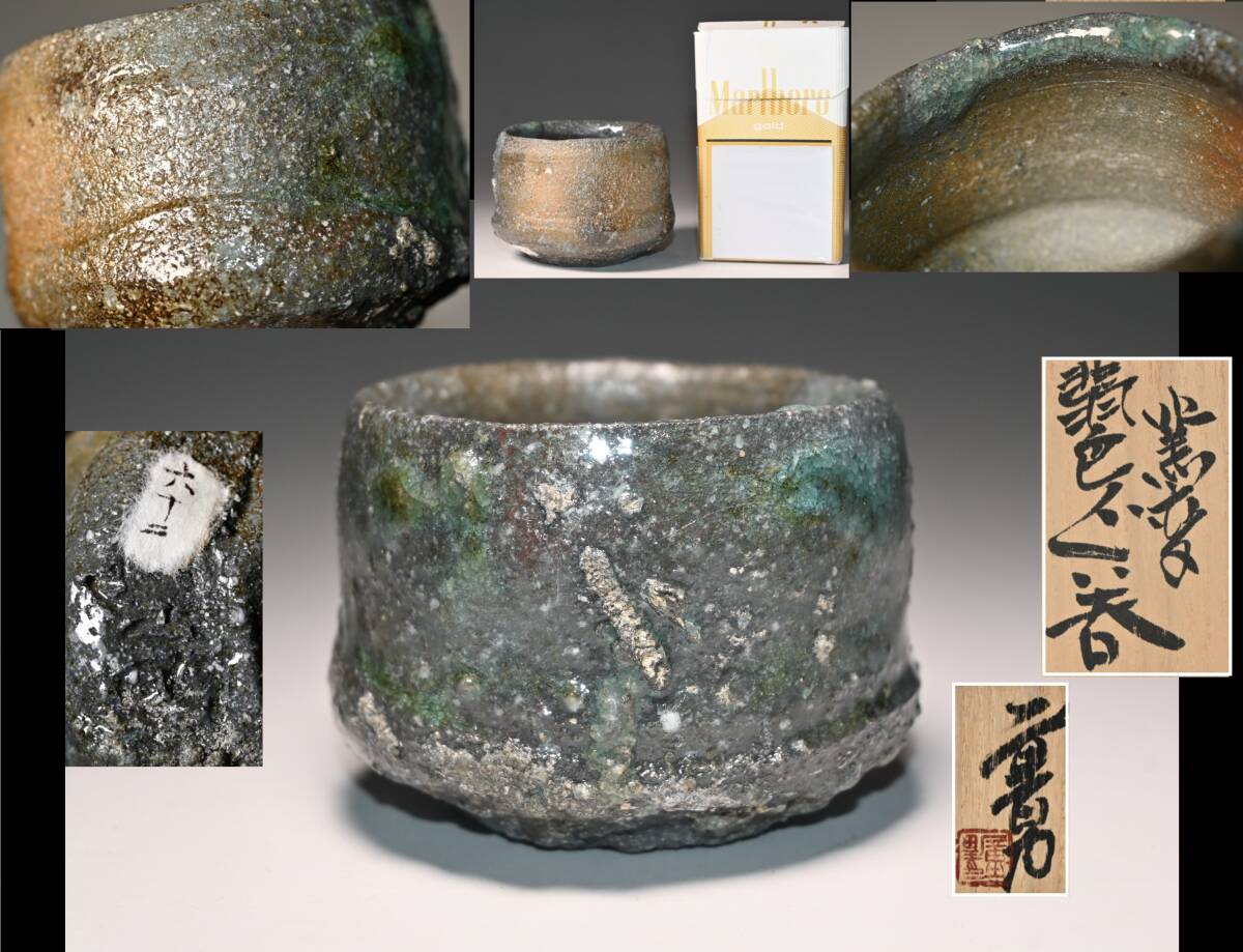> 真贋保証■中野童男 作■ 自然釉 窯変 翡色ぐい呑 共箱 新潟市生 をぐな 酒器 酒杯 酒盃 茨城県 検:日本酒 酒肴