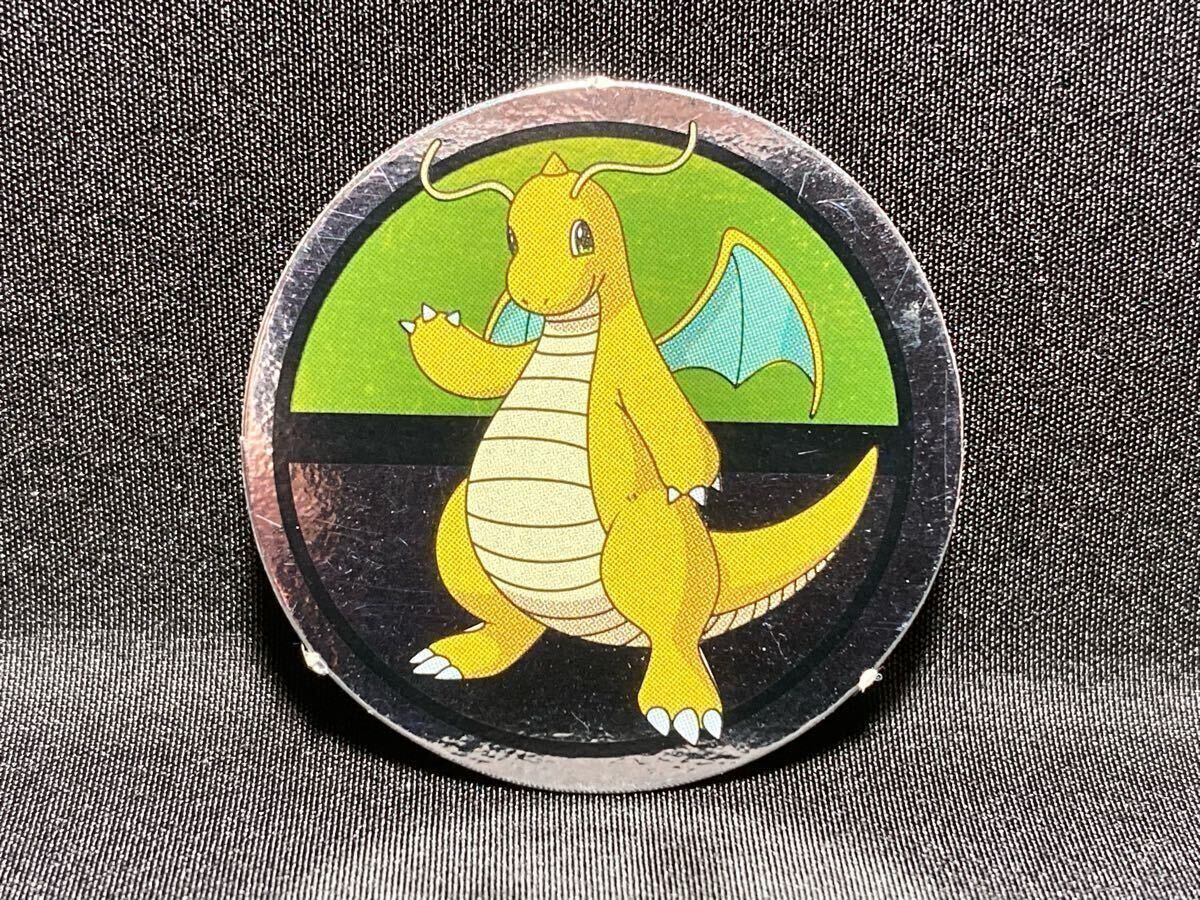 > ポケモン ミニ カード カイリュー 丸型 ぎんピカ メダル シルバー チップ 紙製 ダス めんこ メンコ Pokemon mini cards Round Dragonite