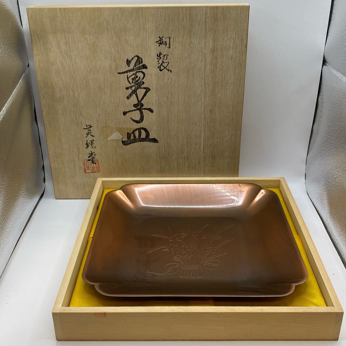 - M0619704B 英純堂 菓子皿 菓子器 銅製 プレート 桔梗 和食器 工芸品 当時物 中古品 現状品
