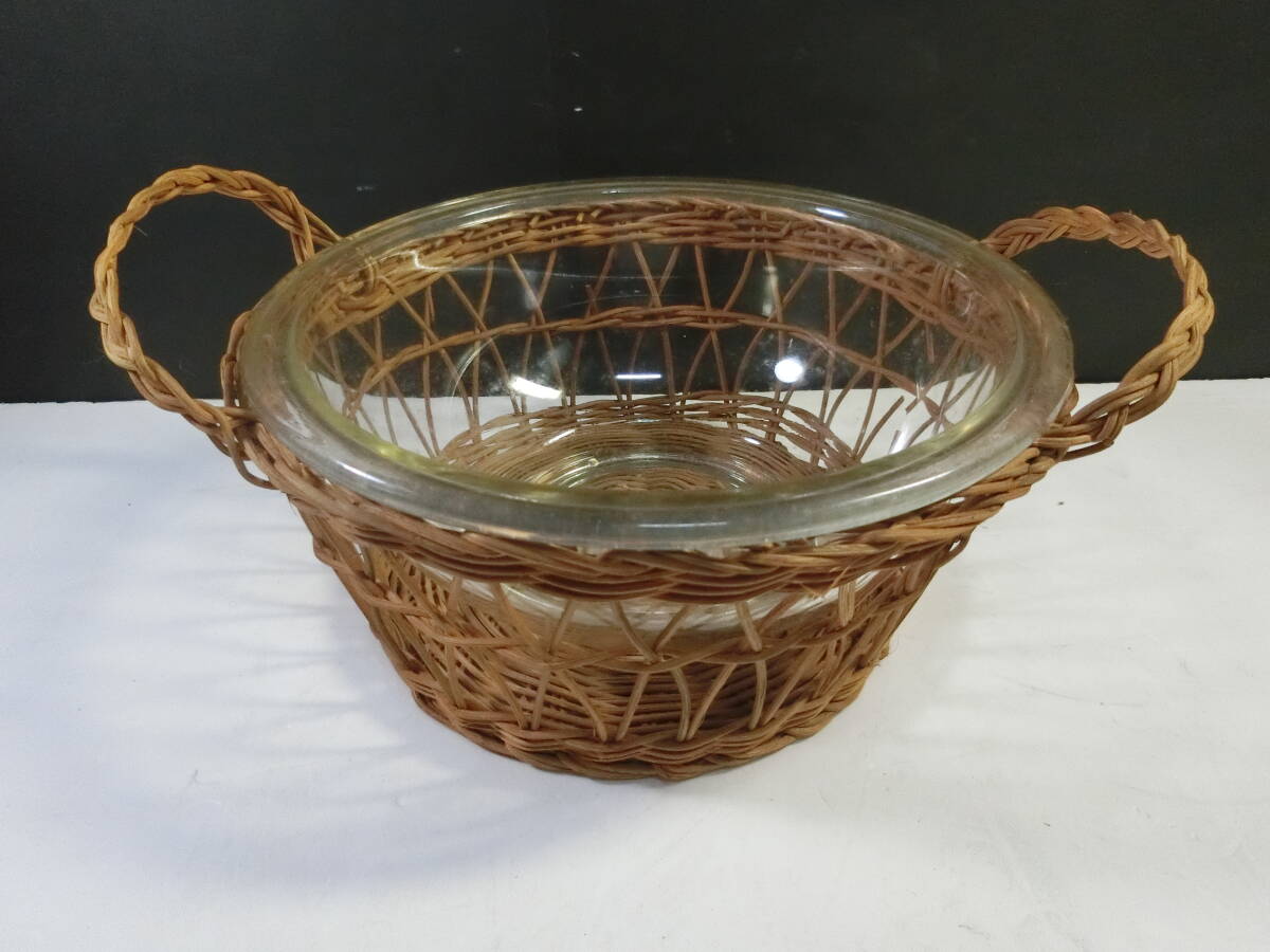 - ★現状品 パイレックス ガラスボール 籐バスケット