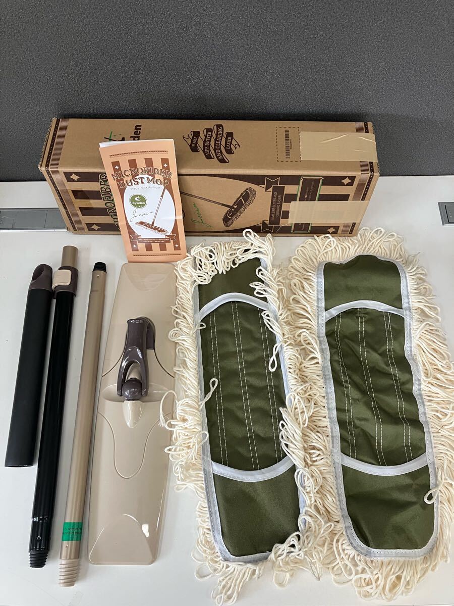 - 0706e2003 Eyliden (エイリデン) ダストモップ 何度も洗って使えるパッド2個付き - ワンタッチで交換 (アーミーグリーン)【同梱不可】