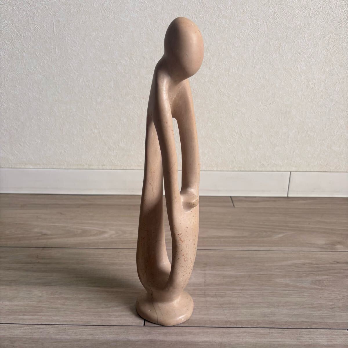 - アメリカビンテージ 天然石彫刻 オブジェ ブックエンド 人モチーフ 親子