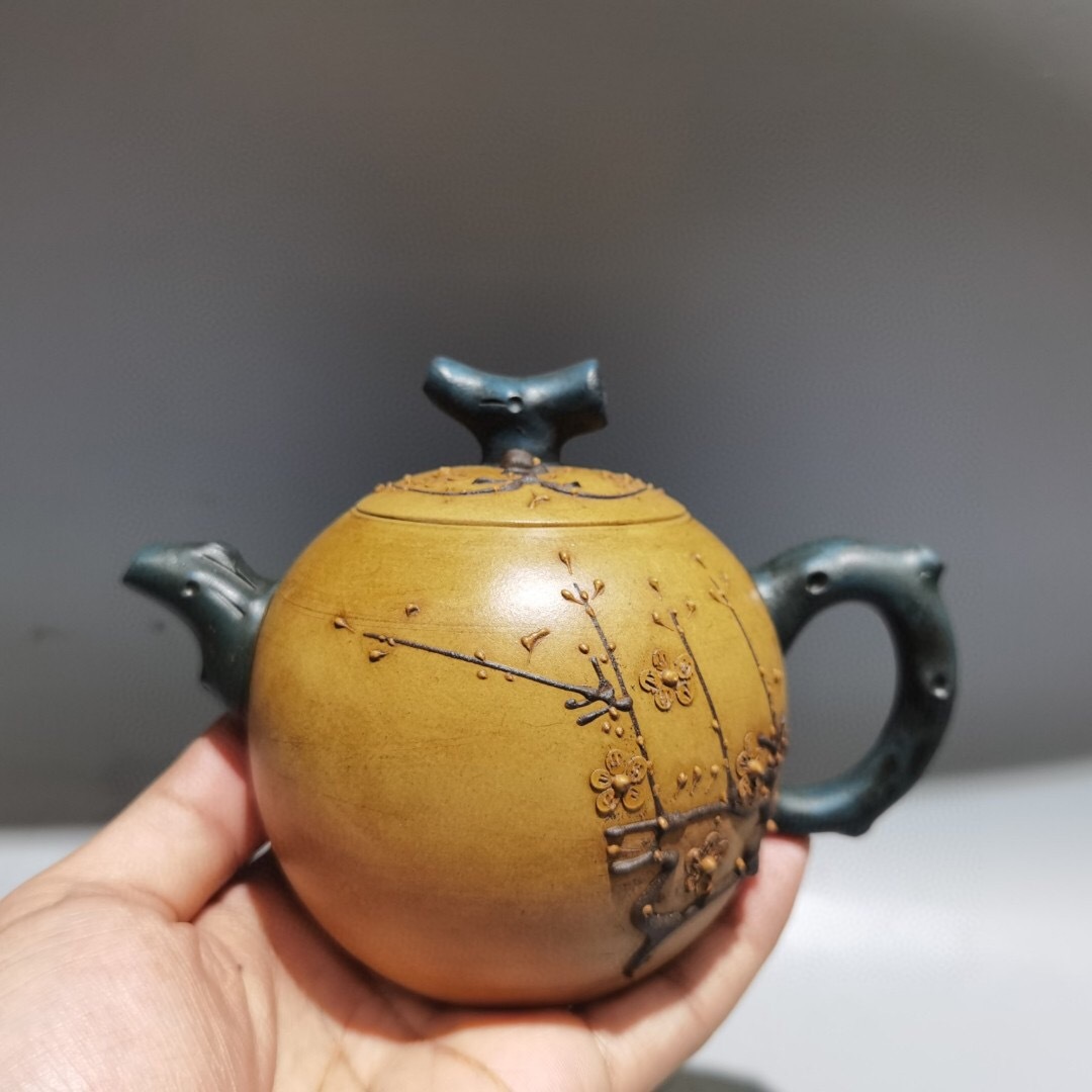 - 『館蔵珍品 紫砂壺 梅花龍蛋壺 周桂珍款 黄段砂 紫砂壺 茶具 茶道品』稀少珍蔵品 古賞物 貴重物品 収蔵品 中国古美術 時代物 古董品