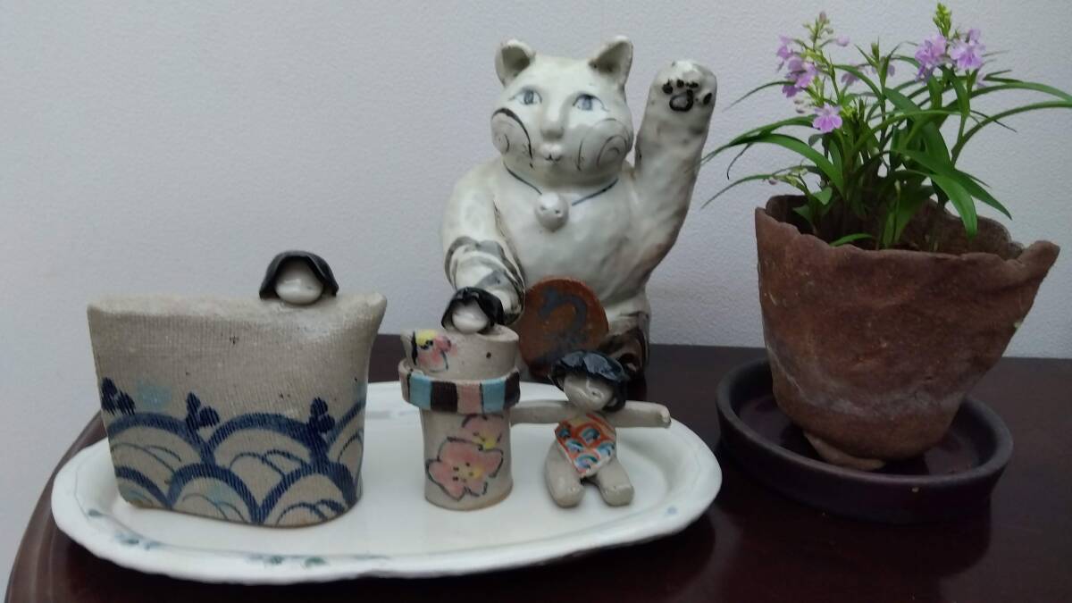 - 越前焼 宇野陶房 宇野ふみ モダニズムポップ花模様手び練り湯飲み5点セット