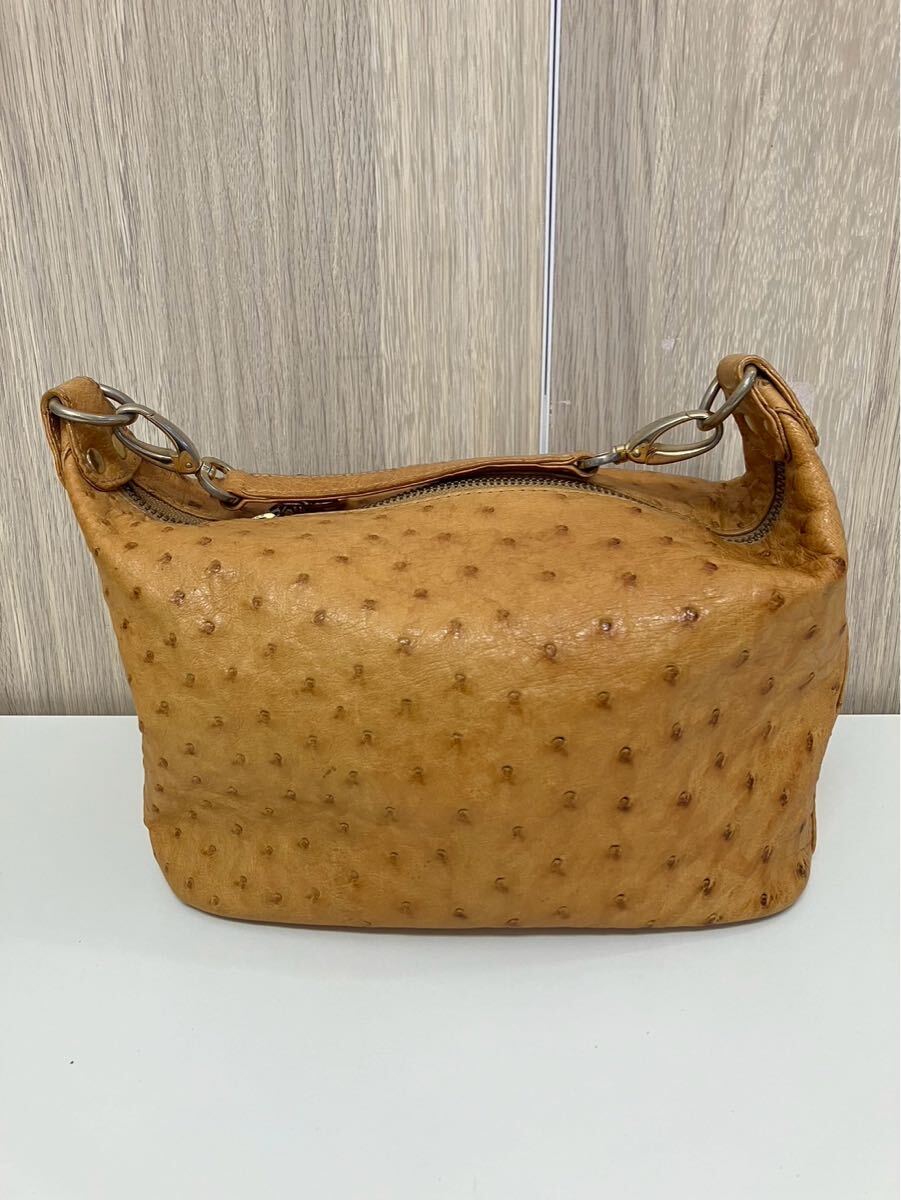 - 【中古品】オーストリッチ ショルダーバッグ ハンドバッグ 茶ブラウン 肩掛け かばんバッグ 現状品