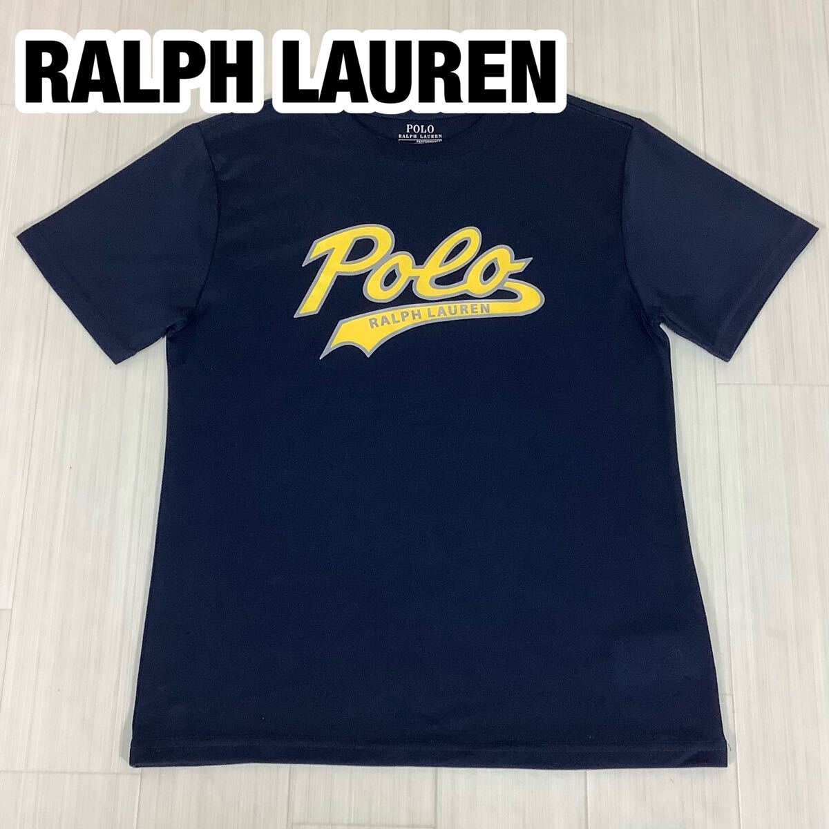 > 美品 POLO RALPH LAUREN ポロラルフローレン 半袖Tシャツ M(10-12) ネイビー 濃紺 ビッグプリント ポリエステル100%
