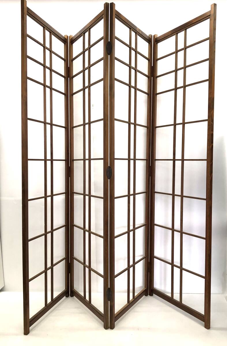 - 札幌引取限定 衝立 屏風 パーテーション 4連 木製 杉 仕切り 目隠し 和風 インテリア 家具 什器 展開183×150×1.7㎝ 収納45.5×150×7㎝