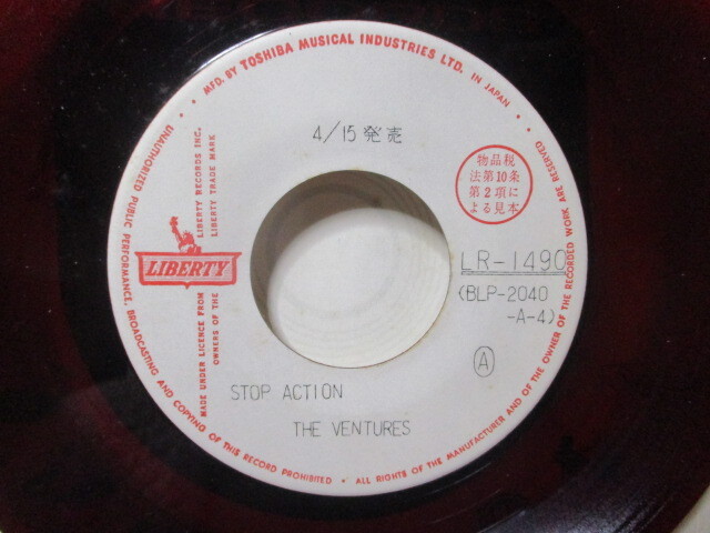 - 見本盤 EP 赤盤 盤のみ ベンチャーズ VENTURES ストップ・アクション STOP ACTION c/w ホイッチャー通りで WHITTIER Blvd. .