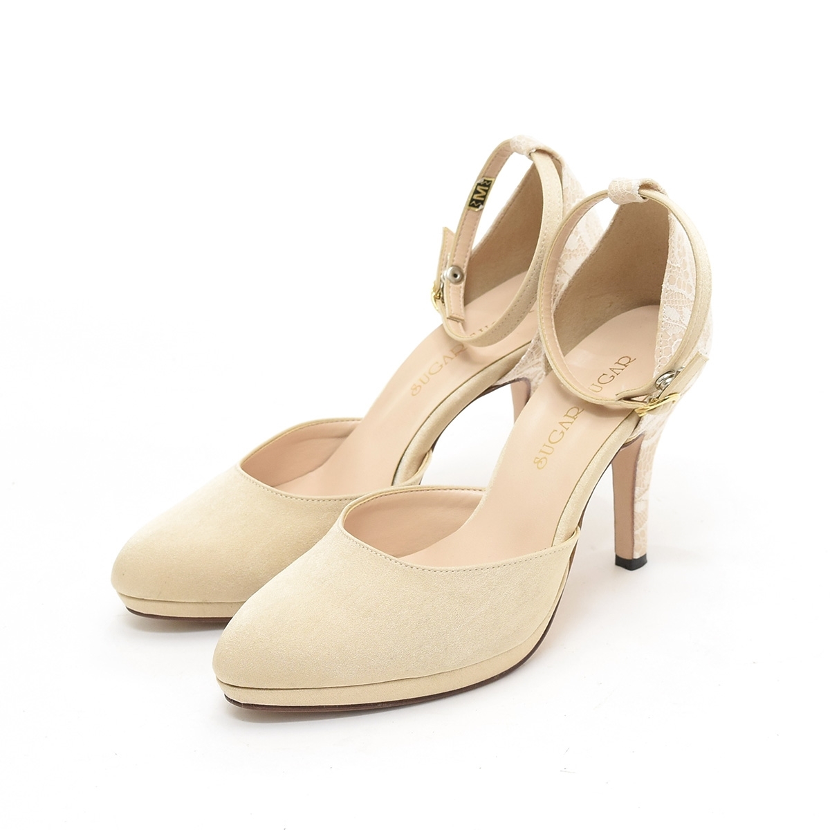 - □477734 SUGAR SUGAR シュガーシュガー 神戸 ○パンプス レーススウェードストラップパンプス サイズ23.0cm レディース 日本製 ベージュ