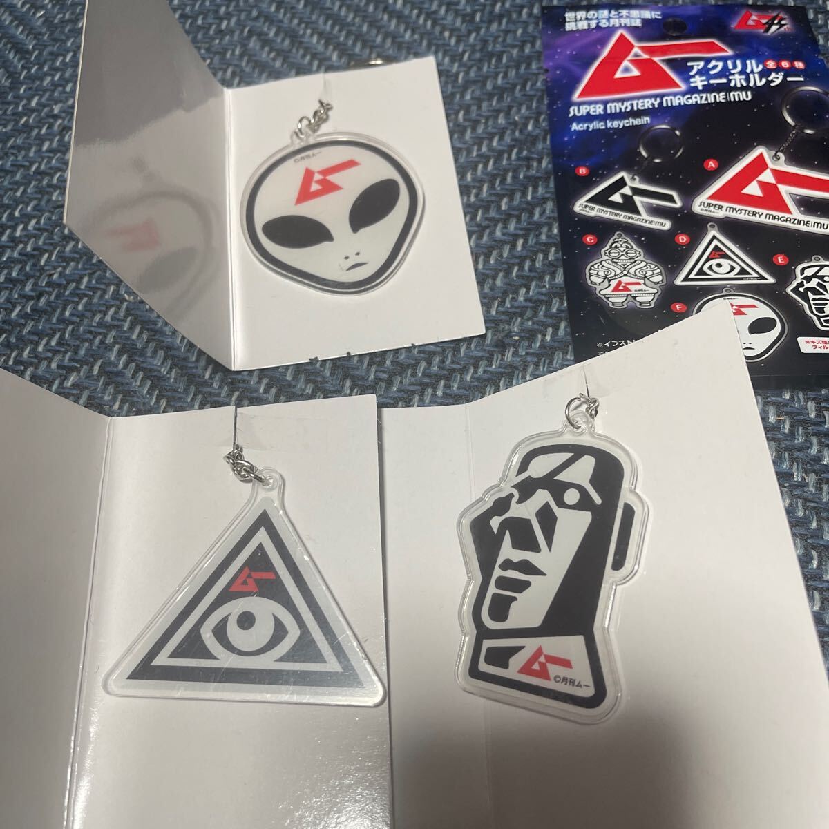 - ムー アクリルキーホルダー 3種セット 宇宙人 モアイ フリーメイソン トライアングル UFO エイリアン ムー認定 UMA セリア