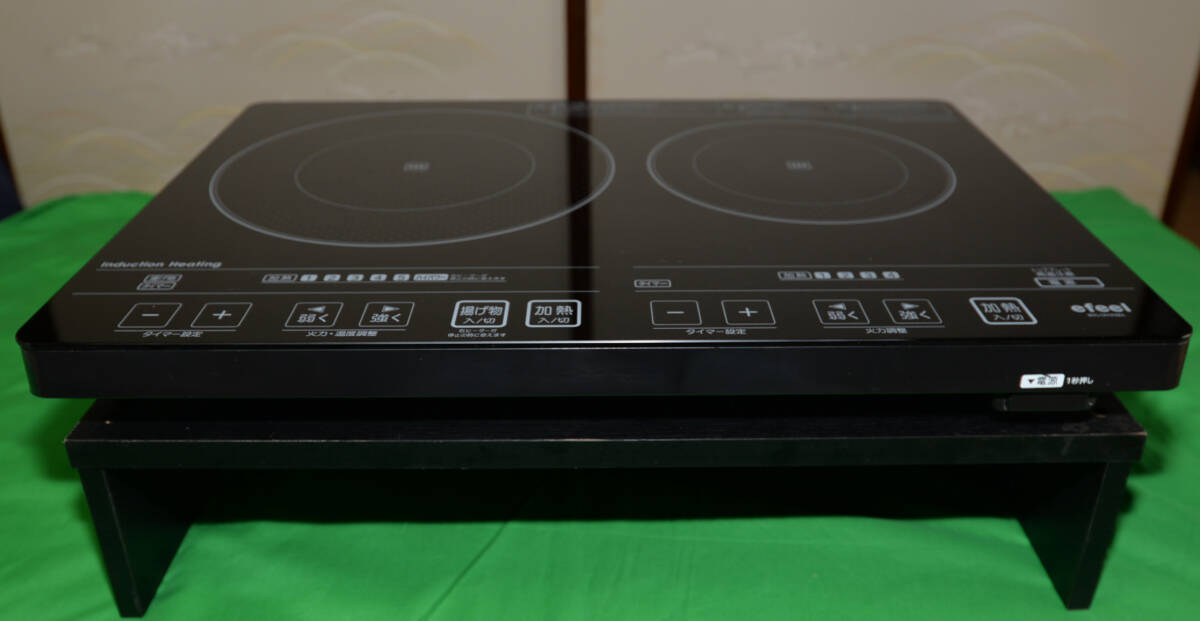 - アイリスオーヤマ IRIS OHYAMA efeel 2口IHクッキングヒーター EIH1470V-B 設置スタンド付き 作動品 中古