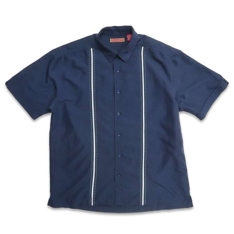 - 古着 90年代 havanera ハバネラ レーヨン 半袖シャツ ネイビー 表記:L gd406042n w50526