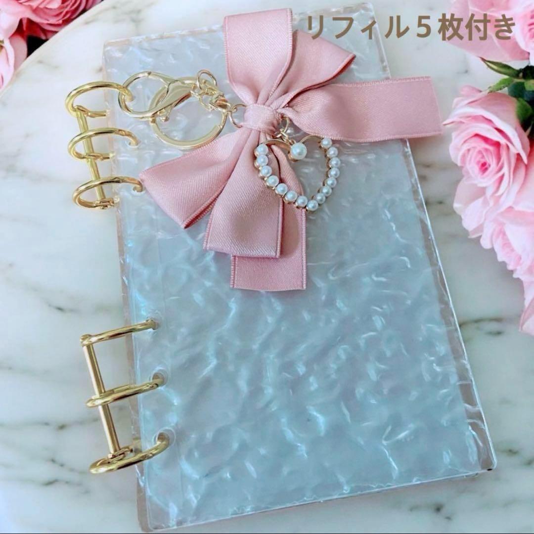 - アクリルバインダー A6 リボン チャーム バインダー貯金 リフィル付き