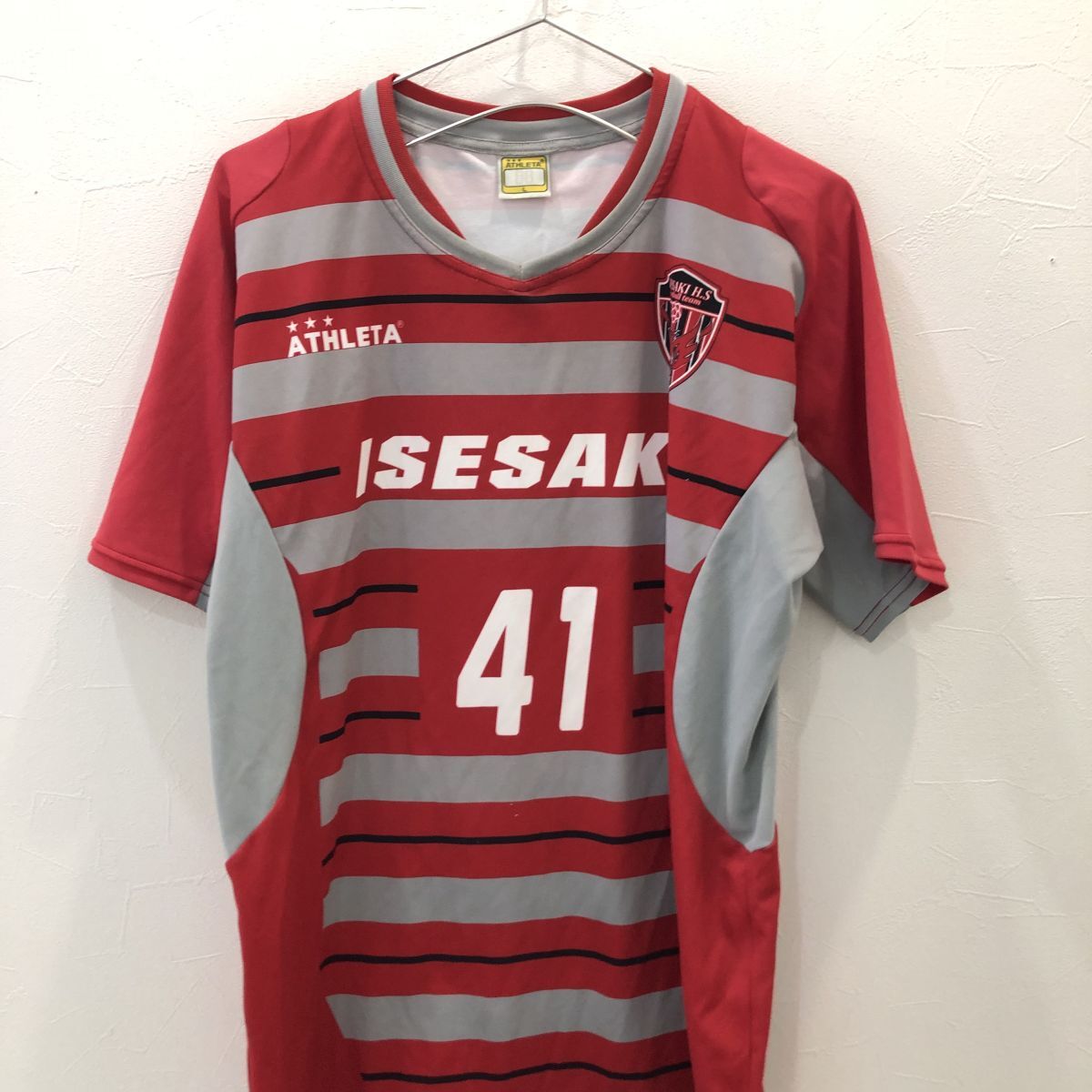 - TNZ2272 実物 伊勢崎 高校サッカー 半袖 #41 アスレタ レッド L