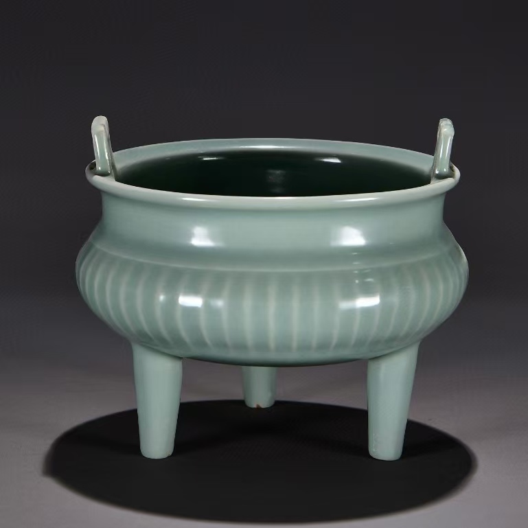 - 磁器 香炉 秘藏 元代 龍泉窯天青釉三足窯 鼎 酒器 茶器 唐磁 染付 陶磁器 收蔵品 古美味 時代物 古美術 古置物 希少珍品 中國文玩6.23