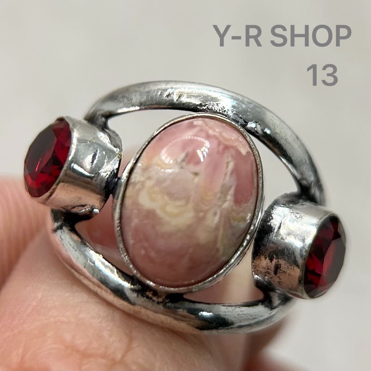 - 天然石★13号★ロドクロサイトとガーネット のエスニックリング★レディース指輪シルバー 925刻印カラーストーン アジアン雑貨新品宝石Y-R
