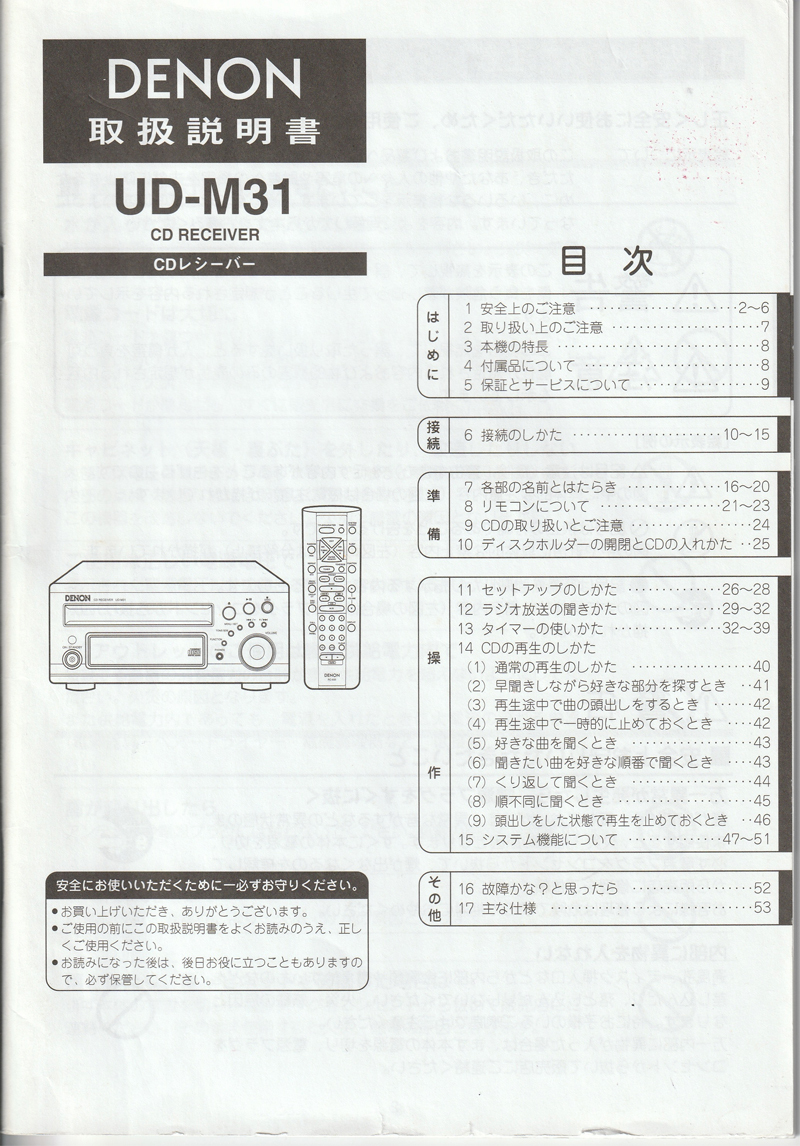 - DENON UD-M31 CDレシーバー用 取扱説明書(中古)