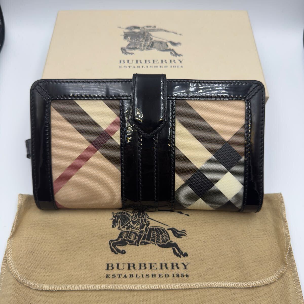 > 極美品 バーバリー 長財布 ブラック チェック PVC 小銭入れ付き メンズ レディース 二つ折り財布 カードケース コインケース