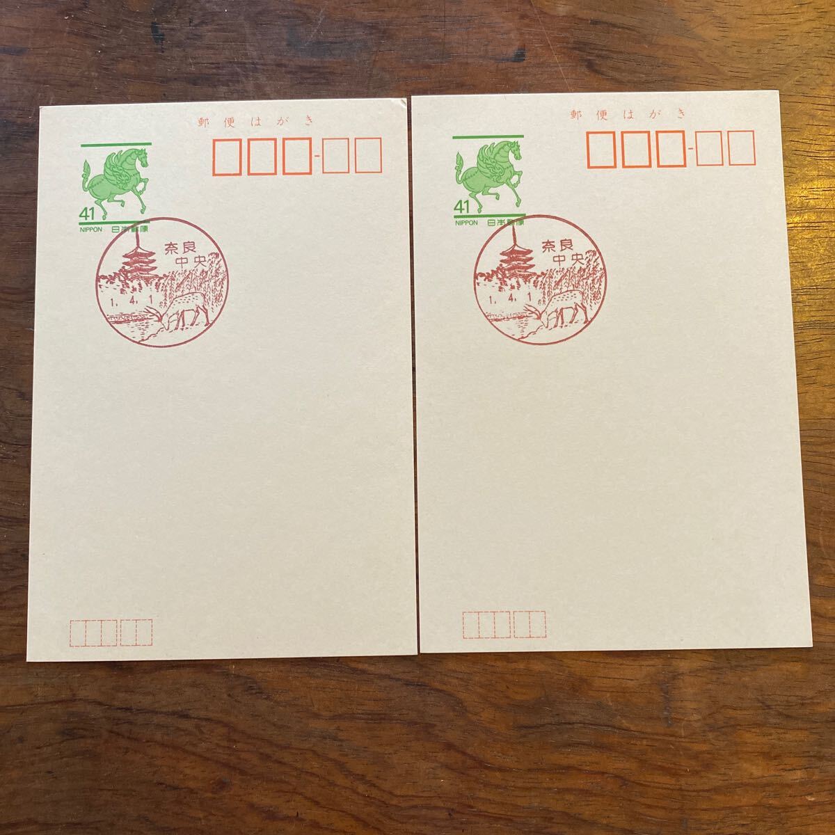 - [猫] 初日風景印 郵便はがき 二枚 奈良