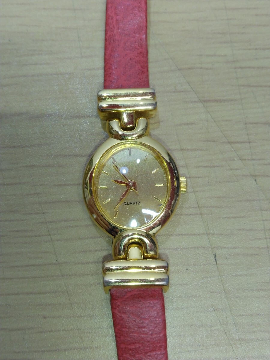 - レディース クォーツ 腕時計 ピンク レザーベルト used 電池切れ