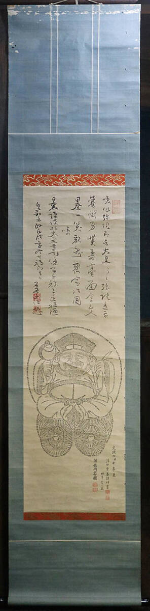 - sg78) 岡熊嶽 熊岳岡嬰図 浮田重善謹拝書「南無阿弥陀仏 六字名号 大黒天御影」文政七年1824 江戸時代<墨絵仏画 大黒天図 南画文人画