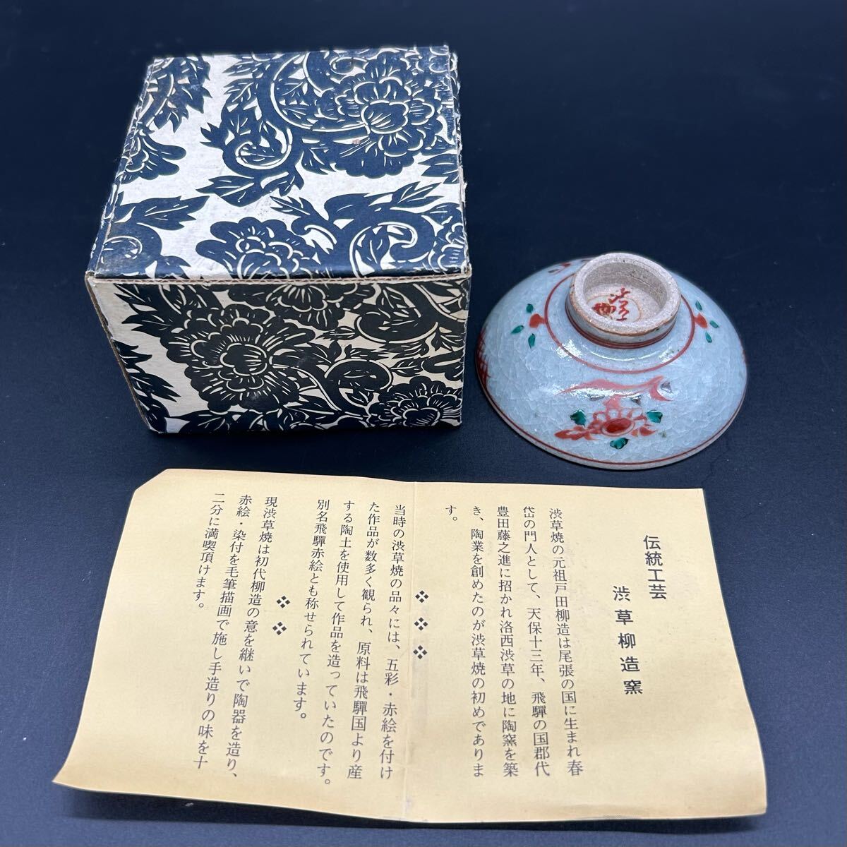 - 渋草焼 渋草柳三 胡錦割花 平盃 ぐい呑み お猪口 酒呑 酒器 赤絵 飛騨高山 ヒ18