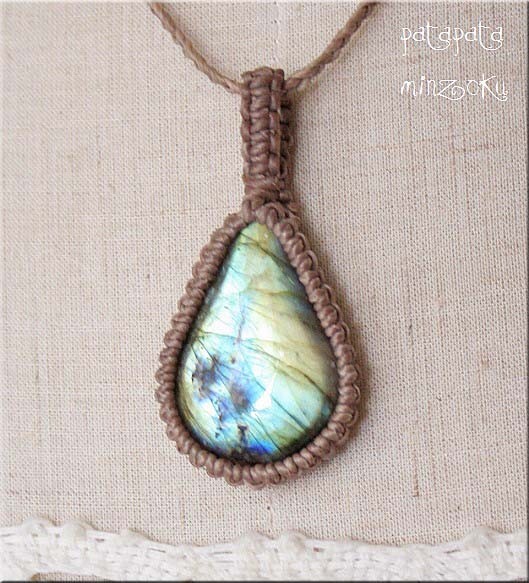 - ラブラドライト ペンダントトップ マクラメ 石包み フレーム編み ペンダント 天然石 パワーストーン