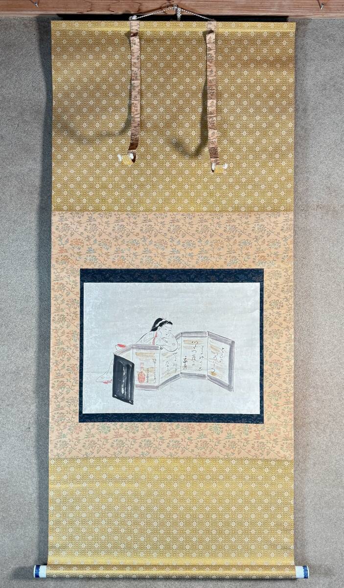 > 真作 幕末 狩野董川 法眼 在銘 「天保美人」 掛軸 鑑定箱 箱書きあり 紙本肉筆 骨董古美術コレクター収蔵品 幅62.5㎝ 高さ128.5㎝