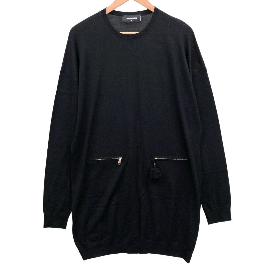 > 極美品◆ワンピース ディースクエアード 長袖ロング丈トップス ワンピース ゴールドジップ レディース サイズM ブラック【AFB31】