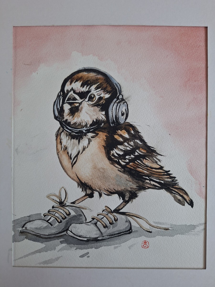 - 水彩画 キュートなスズメくん
