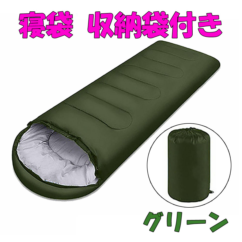 - アウトドア キャンプ 寝袋 コンパクト 収納袋付き 車中泊 防災用 避難用 防寒 丸洗い可能 グリーン 緑