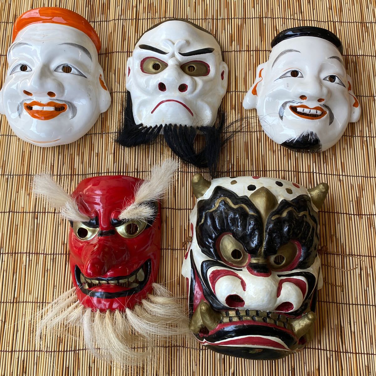 - 備中神楽 重要無形民族文化財 面 時代物 陶器 恵比寿 天狗 置物 インテリア