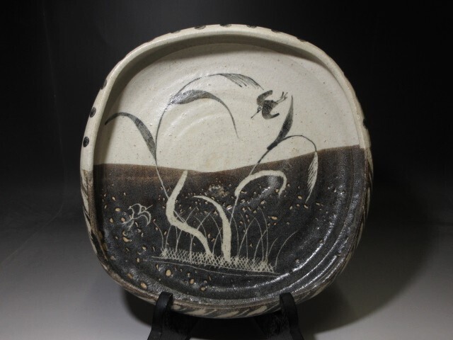 - 本物保証 北大路魯山人 大きい鉢 絵志野 草文 共箱 共布 本物返品OK 250617−12