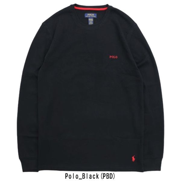- ※訳あり アウトレット(B) POLO RALPH LAUREN(ポロ ラルフローレン)Tシャツ 長袖 メンズ サーマル ロンT クルーネック ロゴ 刺繍 PWLC2F 黒