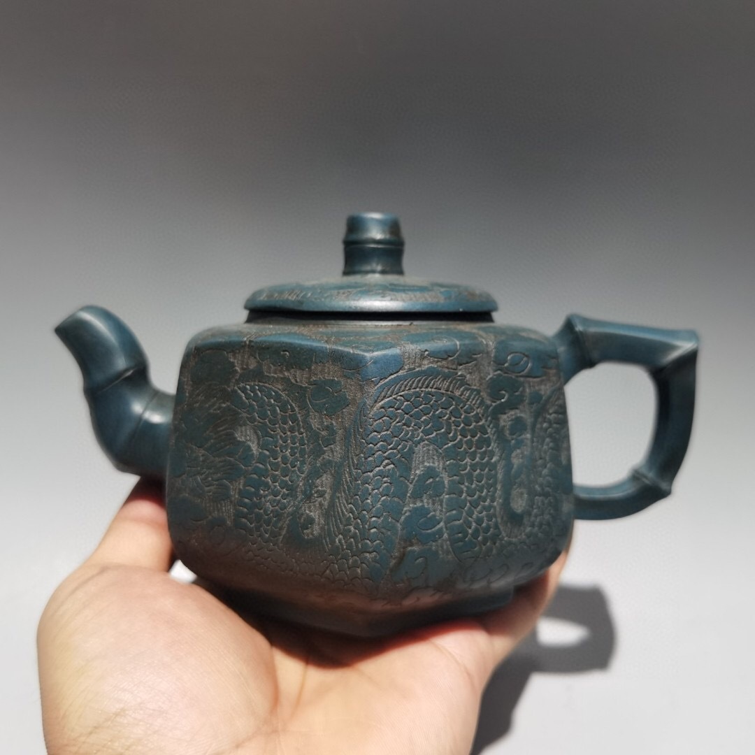 - 『館蔵珍品 紫砂壺 六方壺 周桂珍款 綠泥 紫砂壺 茶具 茶道品』稀少珍蔵品 古賞物 貴重物品 収蔵品 中国古美術 時代物 古董品