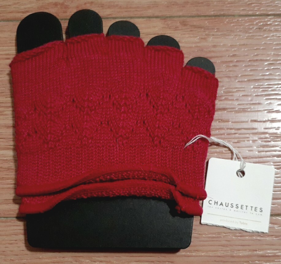 > 11V5■ 未使用 CHAUSSETTES ショセット tabio 5本指 指先 かかと なし レッド パーツ ソックス フットカバー ニットトゥレス タビオ 3364