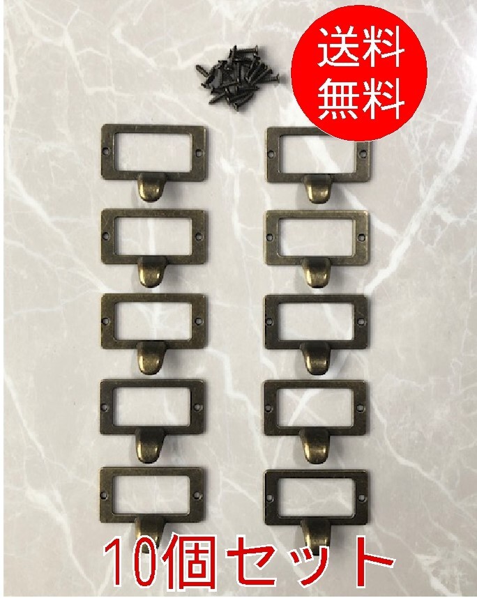 - 【10個セット】■取っ手 タグホルダー付き TO-23■ブロンズ 引き出し アンティーク 家具 プルハンドル 小物 ヨーロッパ 扉 クラシック