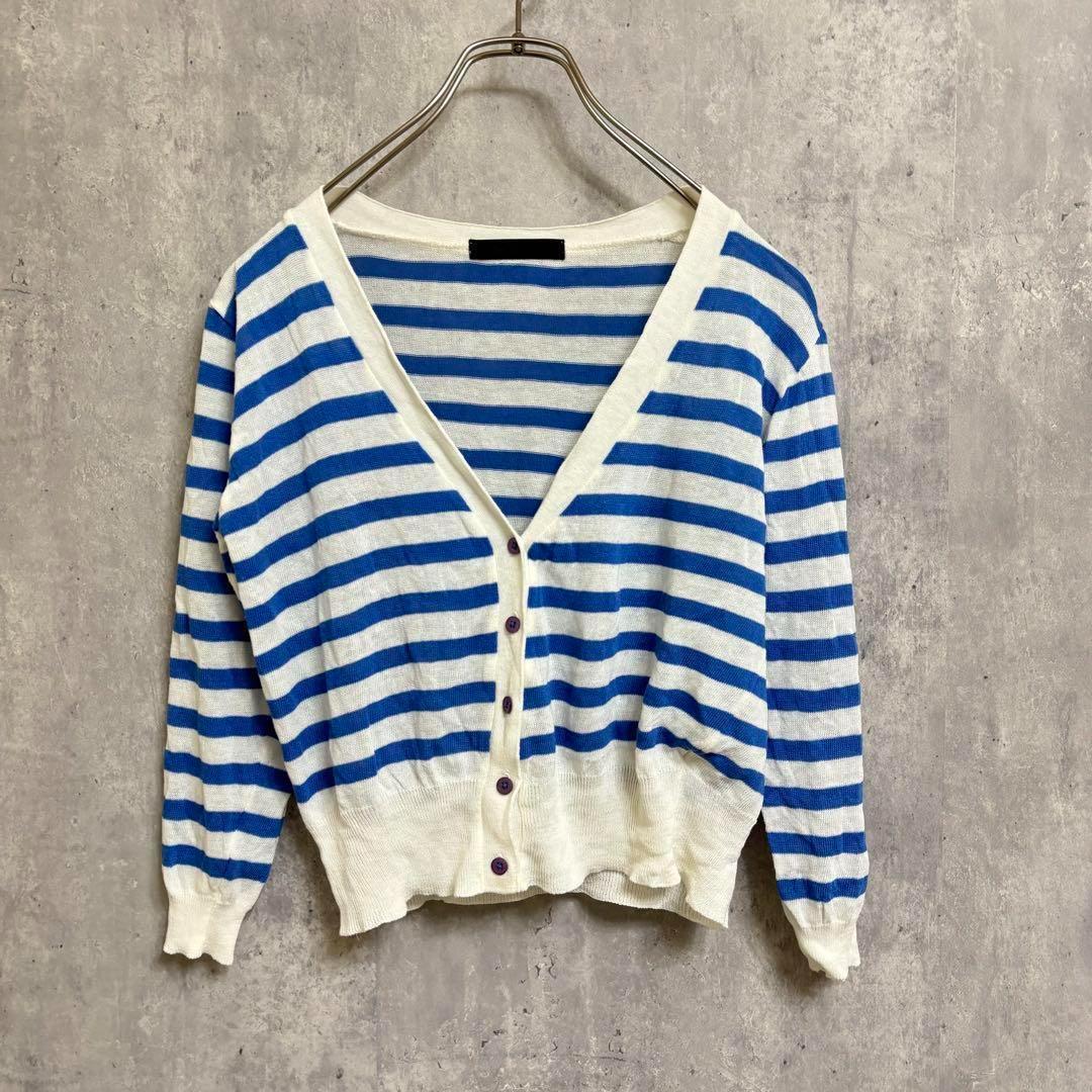 - 【2nd from in】カーディガン 青白ボーダー 薄手 レディース コンサバ
