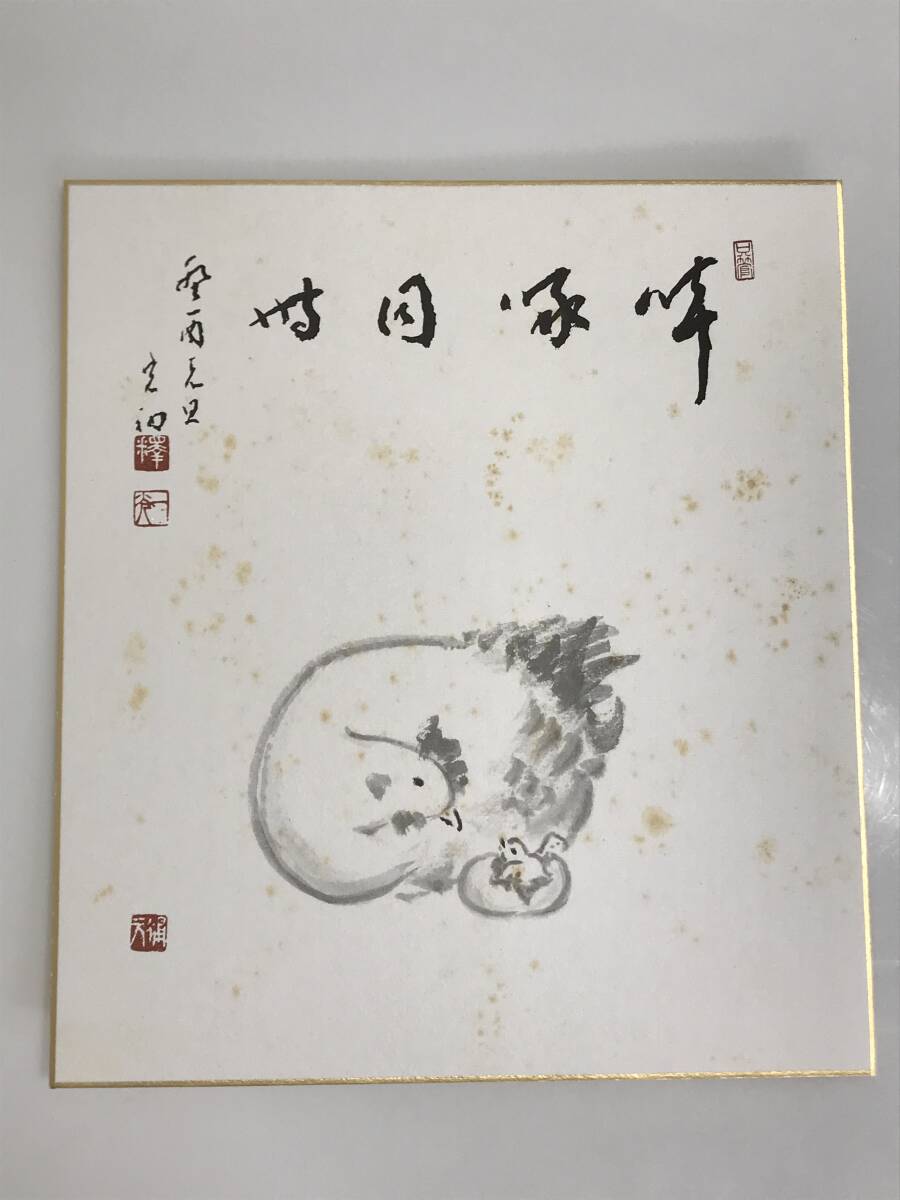 - HG8207 印刷物 色紙 書 楢崎一光 画 楢崎通元「啄同時」書画 曹洞宗 永平寺 愛媛 瑞応寺 在銘 落款