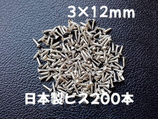 > 200本 日本製 ピックガード バックパネル ビス ギター ベース ネジ 3mmx12mm ニッケル