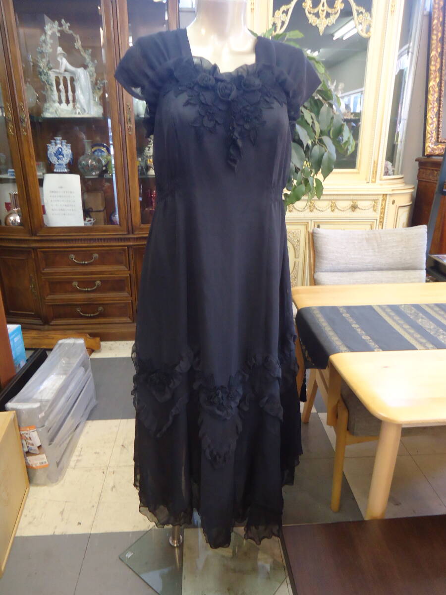 - ●○日本製 アトリエまりこ フラワー レース ブラック ロングドレス ワンピース○●