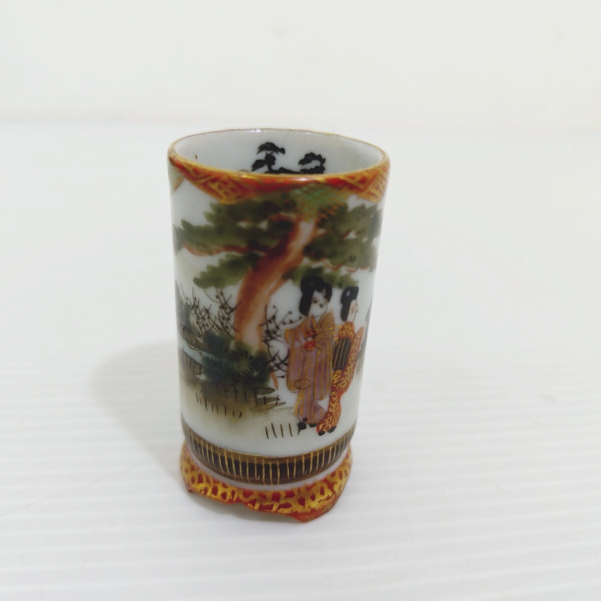 - 九谷焼 茶巾筒 茶巾入れ 毛筆色彩 手書き 骨董 明治 大正