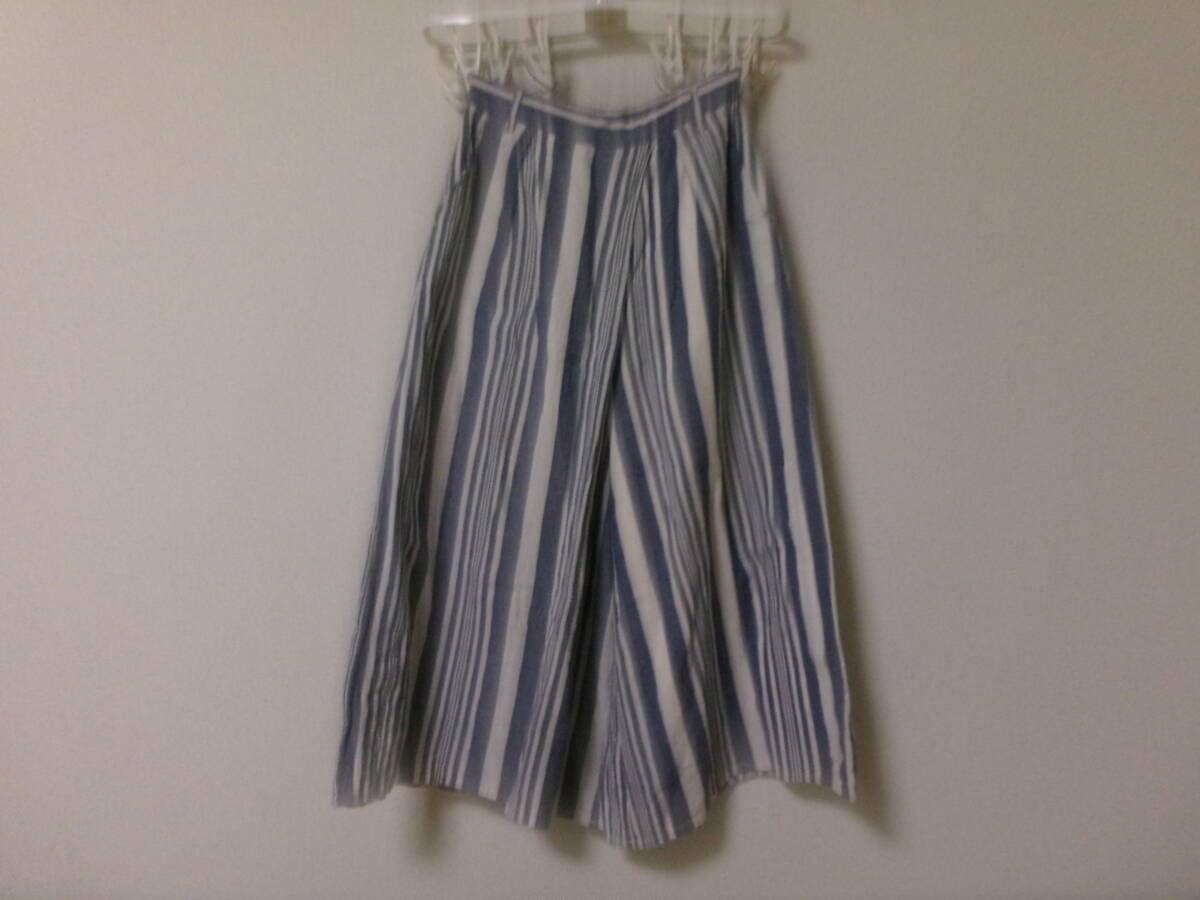 - Hunchハンチ☆青ブルー×生成りアイボリーのストライプ柄☆ゆったりふんわり♪フレアガウチョパンツ☆ナチュラル&涼しい♪麻混リネン素材 M
