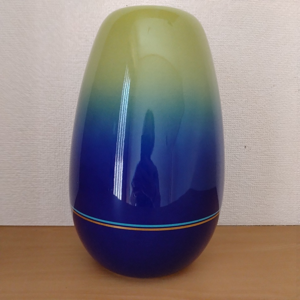 - 香蘭社 敦煌 花瓶 花入 イエロー ブルー 青 黄色 オーロラ 夜明け