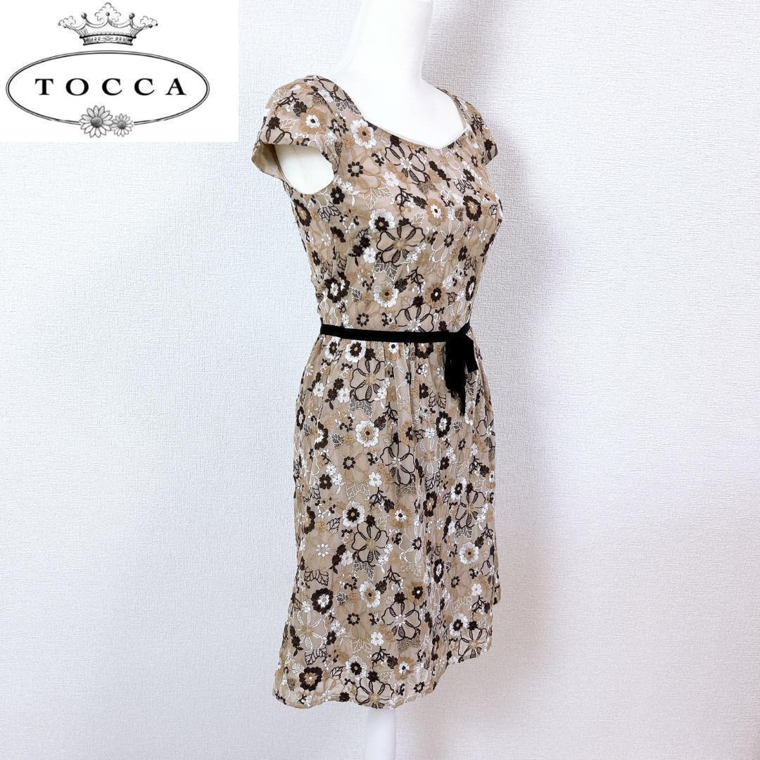 - トッカ 華やか花柄刺繍ドレスワンピース ベージュブラウン 0 S相当